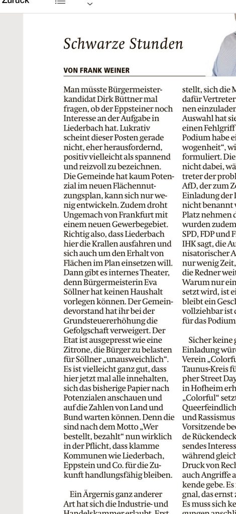 Mein Appell an alle politisch Beteiligten in Liederbach: